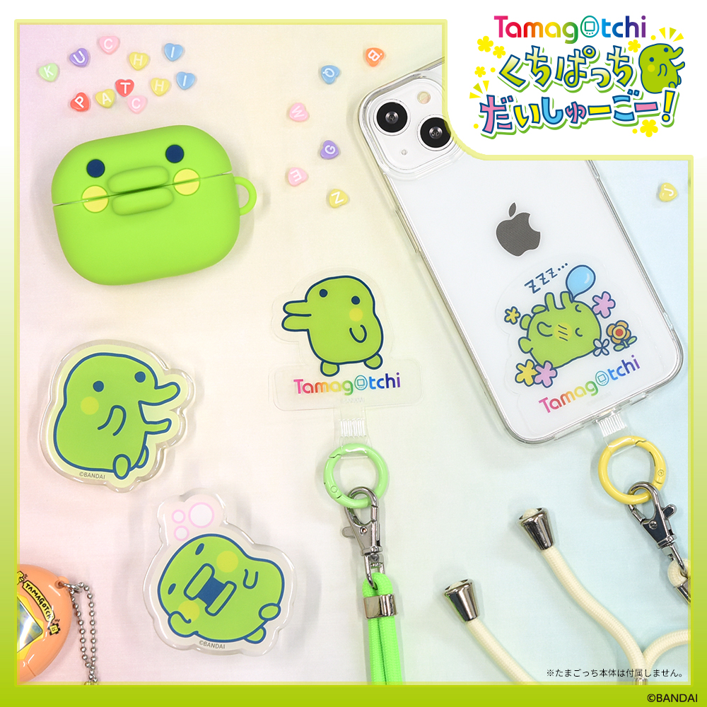 Transform your everyday tech devices with this charming Tamagotchi-themed mobile accessories collection. The series includes versatile smartphone straps, protective phone grips, and a specially designed AirPods Pro case, all featuring the beloved green Tamagotchi character. Each piece combines practical functionality with the nostalgic charm of Tamagotchi's iconic design, bringing a playful touch to your mobile devices.